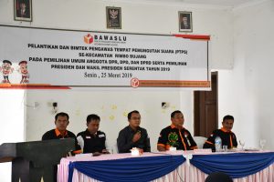 BAWASLUJAMBI-Sebanyak 11.341 orang Pengawas Tempat Pemungutan Suara (TPS) se-Provinsi Jambi Senin (25/3) yang dilakukan serentak se-Indonesia resmi dilantik oleh masing-masing Panwaslu Kecamatan.