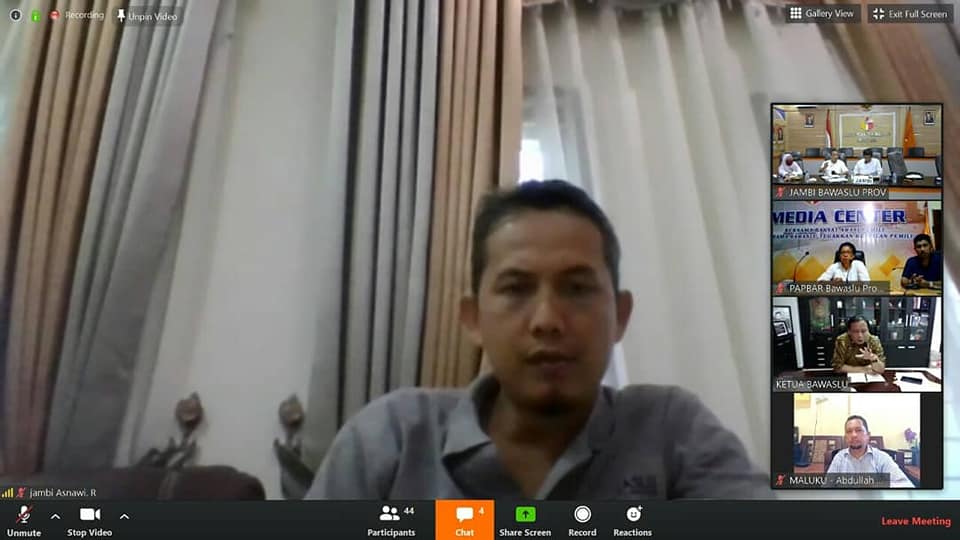 Ketua Bawaslu RI Abhan menyatakan bahwa keputusan tersebut belum menjadi keputusan yang final. Hal tersebut disampaikannya dalam rapat koordinasi bersama Ketua Bawaslu Provinsi se-Indonesia melalui media konferensi video. Tampak Ketua Bawaslu Provinsi Jambi Asnawi R, M.Pd menghadiri dan mengikuti pertemuan virtual atau online dari kediamannya Rabu sore (15/4).