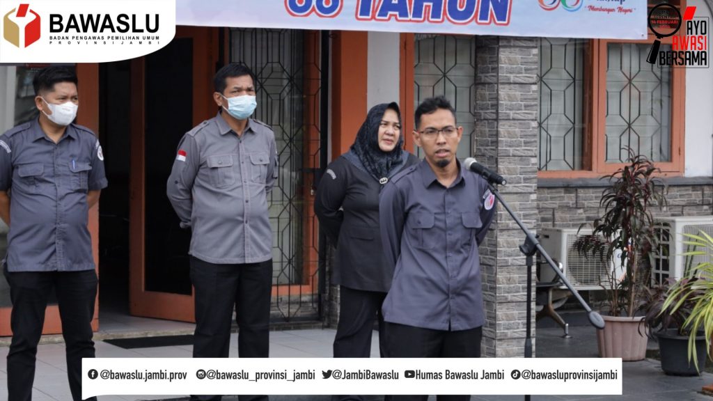 Bawaslu Provinsi Jambi menggelar Apel Pagi, Bertindak sebagai Pembina Apel Anggota Bawaslu Provinsi Jambi Ari Juniarman, S.H., M.H diikuti oleh jajaran sekretariat Bawaslu Provinsi Jambi berlangsung di halaman Kantor Bawaslu Provinsi Jambi Senin, 9 Januari 2023. Tampak hadir Kepala Sekretariat Bawaslu Provinsi Jambi Nasuhaidi, S.Pd., S.Sos, M.Si dan Para Kabag dilingkungan Bawaslu Provinsi Jambi.