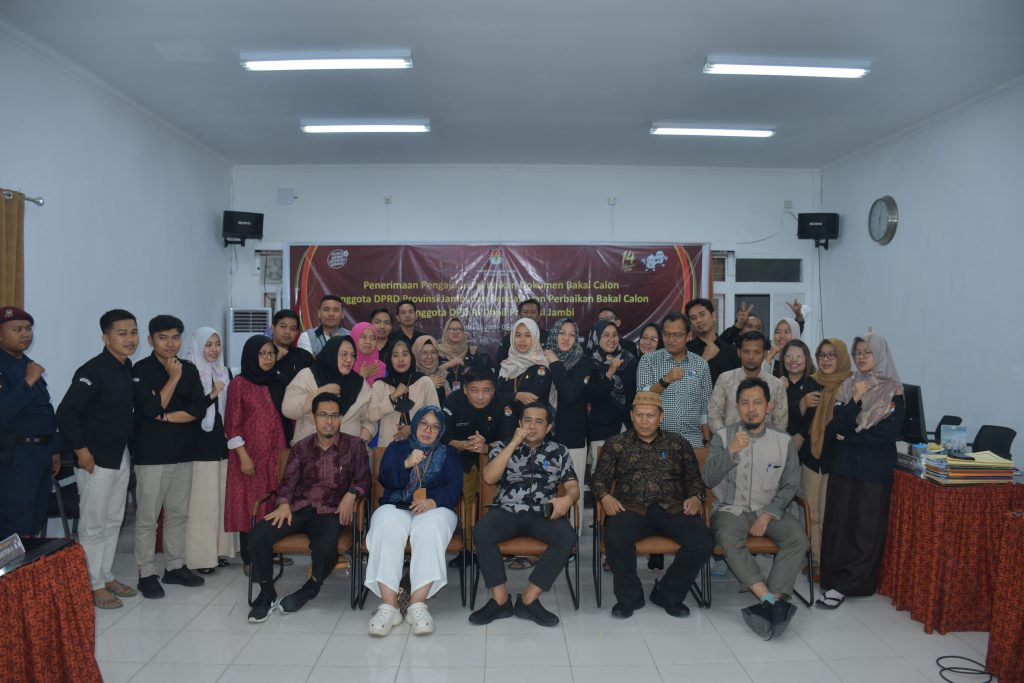 Bawaslu Provinsi Jambi melakukan pengawasan melekat dalam proses penerimaan dan penyerahan perbaikan dokumen bakal calon Anggota DPRD Provinsi Jambi dari Partai Politik Peserta Pemilu 2024 di KPU Provinsi Jambi. Tampak hadir Anggota Bawaslu Provinsi Jambi Rofiqoh Pebrianti, S.P, Muhammad Hapis, S.Pd.I, dan Ari Juniarman, S.H., M.H, perwakilan Bawaslu RI, Kabag Pengawasan dan Humas Yanita Kusuma, S.H., M.H dan Para Kabag dan Staf Bawaslu Provinsi Jambi.