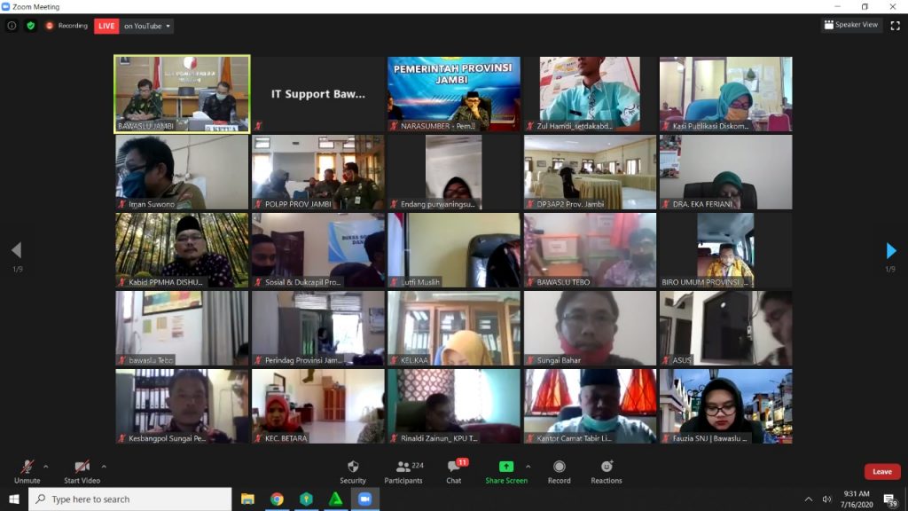 Jambi, Badan Pengawas Pemilihan Umum - Bawaslu Provinsi Jambi menggelar kegiatan sosialisasi daring atau webinar dengan Netralitas ASN pada Pilkada tahun 2020, dengan narasumber Arie Budhiman dari KASN, Sudirman Pj. Sekda Provinsi Jambi dan Wein Arifin Anggota Bawaslu Provinsi Jambi, dengan moderator Nasuhaidi Kepala Sekretariat Bawaslu Provinsi Janbi yang berlangsung Kamis (16/7) dan diikuti ratusan peserta.