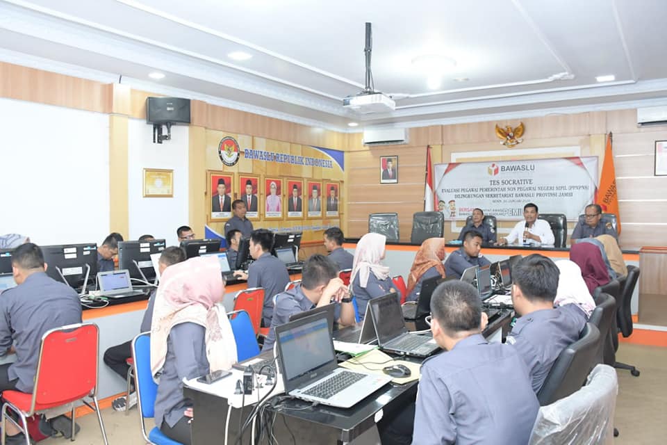 “Sebagai tindak lanjut dari Surat Edaran Sekretaris Jenderal Bawaslu Nomor 1138/BAWASLU/SJ/KP.08/XII/2019 tanggal 27 Desember 2019 Hal Evaluasi PPNPNS di Lingkungan Sekretariat Bawaslu Provinsi/Panwaslih, maka Bawaslu Provinsi Jambi kemarin (Senin, 20/1) sudah melaksanakan tes evaluasi dengan menggunakan aplikasi online socrative,” ujarnya Selasa (21/1).