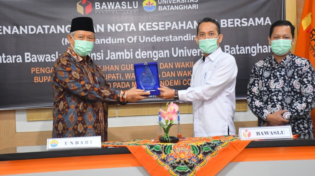 “Dengan langkah konkret yang dilakukan oleh Bawaslu adalah mengadakan kegiatan melalui daring dan menjalin hubungan dengan perguruan tinggi. Dimohonkan kepada Rektor UNBARI untuk ikut mensosialisasikan penyelenggaran Pemilihan termasuk penyelesaian Sengketa Pemilihan, dan melalui kerjasama ini dapat memberikan saran dan masukan bagi kerja-kerja Bawaslu Provinsi Jambi,” ujarnya seusai melakukan penandatanganan MoU.