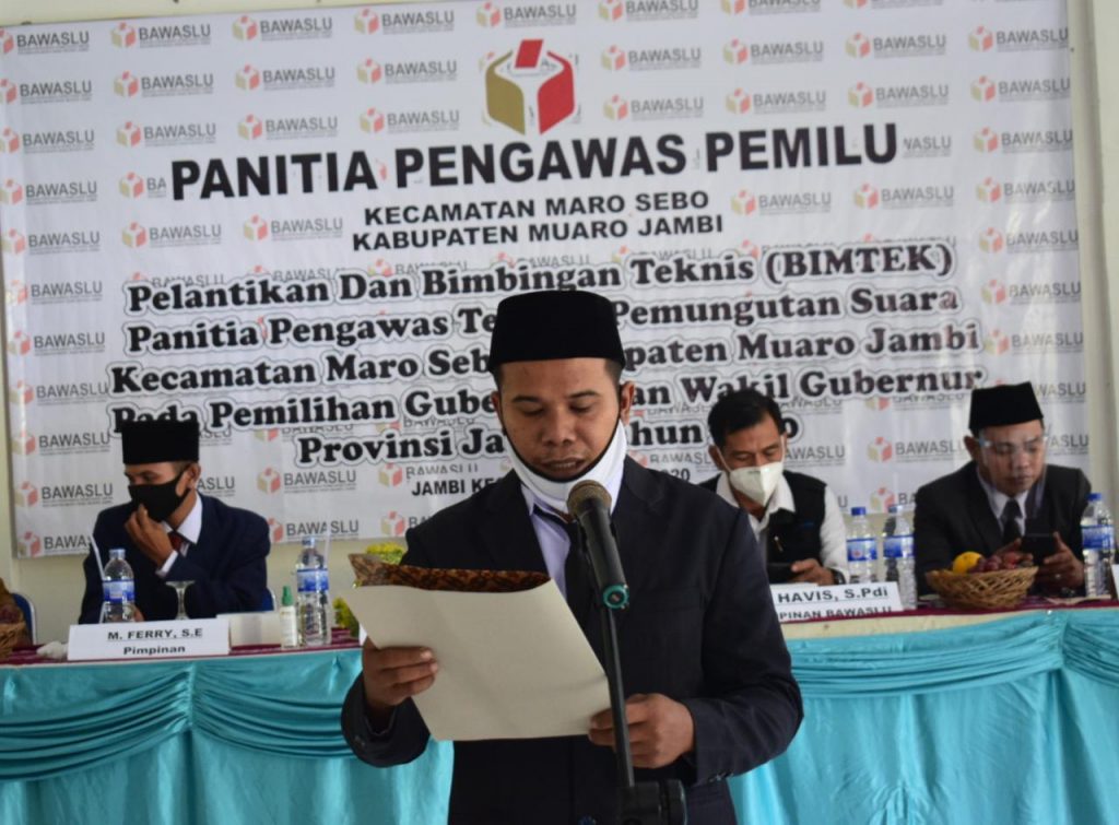 Jambi, Badan Pengawas Pemilihan Umum - Dalam tugas rekrutmen Pengawas TPS yang terlaksana dengan baik dan pada hari ini Senin (16/11/2020) secara resmi serentak dilakukan pelantikan Pengawas TPS se-Provinsi Jambi sebanyak 8.236 orang.