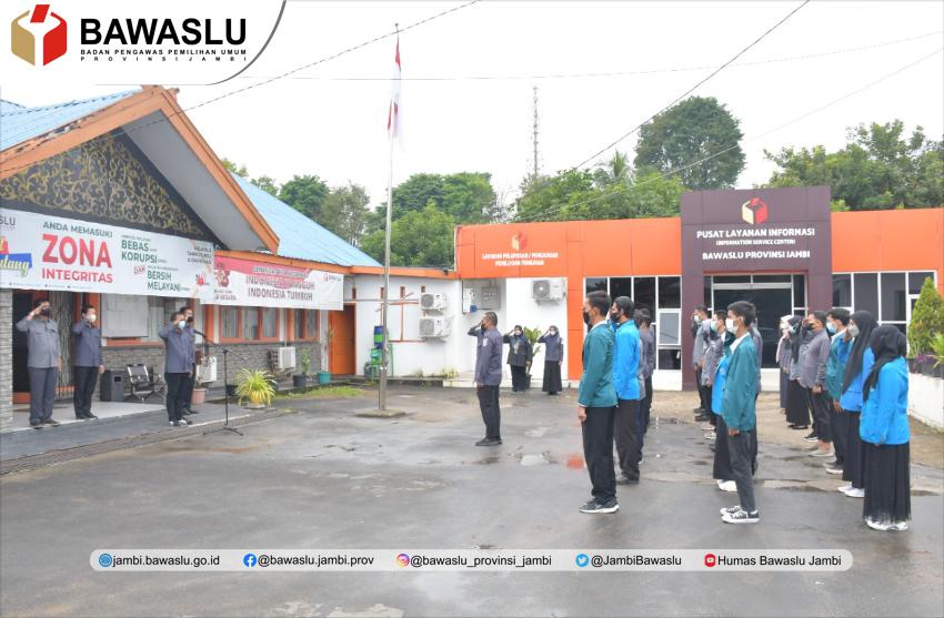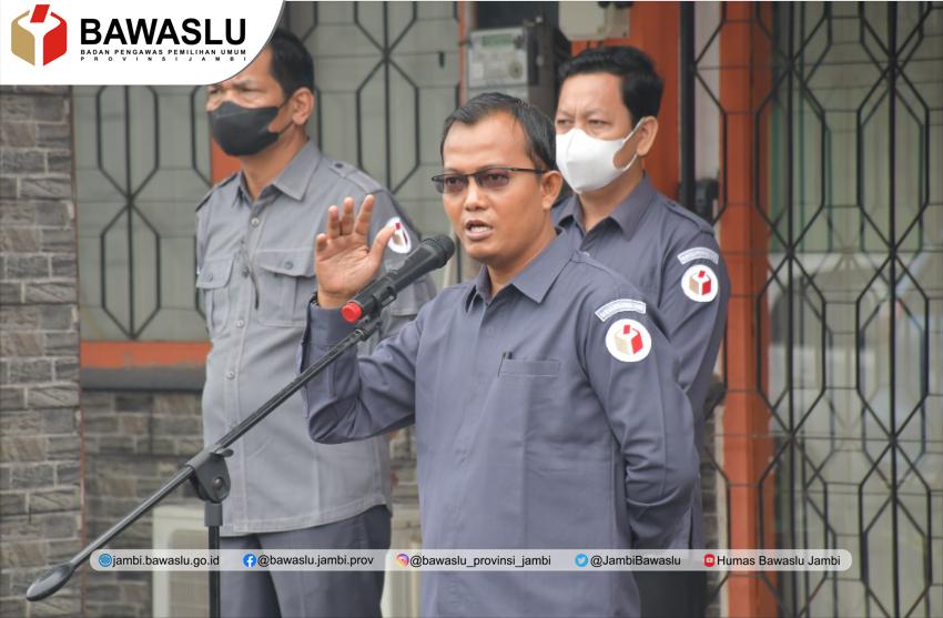 Jambi, Badan Pengawas Pemilihan Umum - Bawaslu Provinsi Jambi melakukan apel pagi yang bertindak sebagai Pembina Apel Anggota Bawaslu Provinsi Jambi Fahrul Rozi, S.Sos berlangsung di halaman Kantor Bawaslu Provinsi Jambi Senin, 31 Januari 2022.