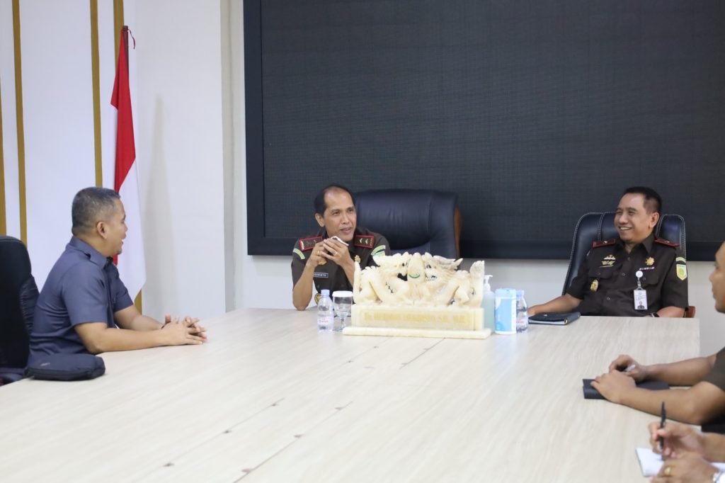 Jambi, Badan Pengawas Pemilihan Umum – memasuki tahapan pemilihan serentak tahun 2024, Ketua Bawaslu Provinsi Jambi Wein Arifin didampingi Kabag Administrasi Nurwahyudi dan jajaran sekretariat Bawaslu Provinsi Jambi menggelar pertemuan dengan Kajati Jambi Hermon Dekristo bersama Wakil Kajati Jambi Riono Budisantoso, Aspidum Kejati Jambi Reza Fachlewi dan Asintel Kejati Jambi Nophy T.Suoth serta didampingi Kepala Bagian Tata Usaha Kejati Jambi Beni Putra, yang berlangsung di ruang pertemuan Kajati Jambi, Senin siang (19/08/2024).