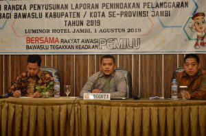 Hal ini disampaikan oleh Anggota Bawaslu Provinsi Jambi Wein Arifin, S.IP M.IP dalam acara rapat pembinaan penindakan pelanggaran dalam rangka penyusunan laporan penindakan pelanggaran Pemilu 2019 bagi Bawaslu Kabupaten/Kota se-Provinsi Jambi yang dilaksanakan di Hotel Luminor Kota Jambi Kamis (1/8) .