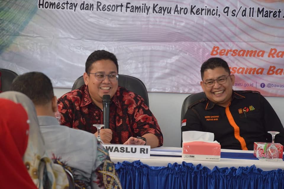 Seusai menghadiri kegiatan SIPS, Anggota Bawaslu RI menyempatkan menghadiri kegiatan Rakernis di Kayu Aro. Dalam arahannya, meminta jajaran Panwascam untuk selalu mempedomani dan menaati aturan dalam penyelenggaraan Pilkada serentak tahun 2020.
