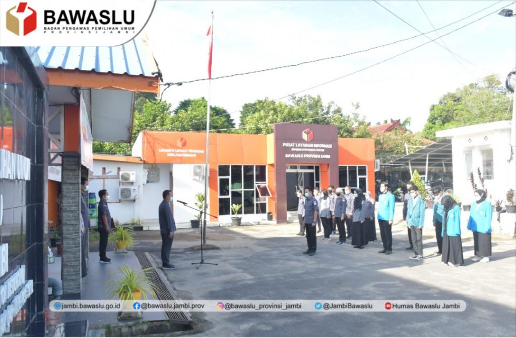 Jambi, Badan Pengawas Pemilihan Umum - Bawaslu Provinsi Jambi menggelar Apel Pagi yang dilakukan setiap hari Senin. Bertindak sebagai Pembina Apel Ketua Bawaslu Provinsi Jambi Asnawi R, M.Pd, yang berlangsung di halaman Kantor Bawaslu Provinsi Jambi Senin, 7 Februari 2022.