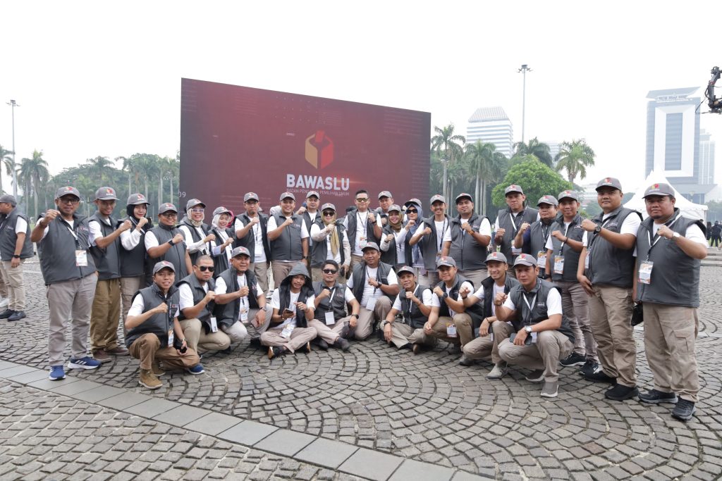Jambi, Badan Pengawas Pemilihan Umum - Ketua danAnggota Bawaslu Provinsi Jambi bersama Bawaslu Kabupaten/Kota se-Provinsi Jambi menghadiri kegiatan Apel Siaga Pengawasan Tahapan Kampanye pada Pemilu tahun 2024 di Monas Jakarta pada hari Minggu pagi tanggal 26 November 2023.