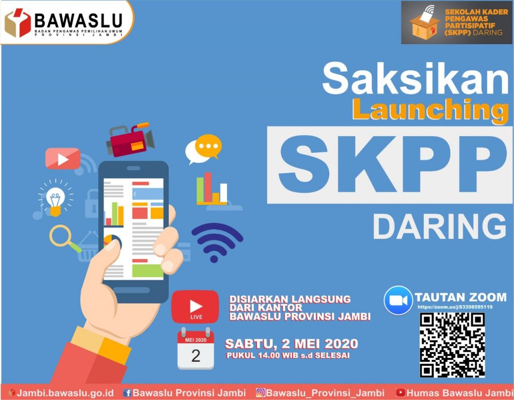 Jambi, Badan Pengawas Pemilihan Umum – Badan Pengawas Pemilihan Umum (Bawaslu) Provinsi Jambi direncanakan akan meluncurkan (launching) Sekolah Kader Pengawas Partisipatif (SKPP) Daring, pada hari Sabtu Siang (2/5).