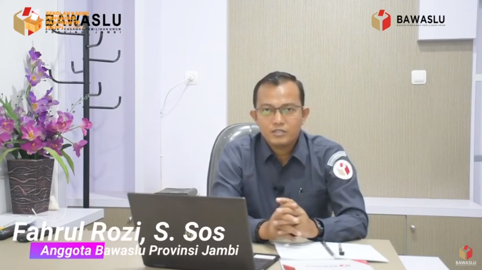 Anggota Bawaslu Provinsi Jambi Fahrul Rozi, S.Sos menjadi salah satu narasumber dalam SKPP Daring, dan dapat disaksikan di Youtube Bawaslu RI. F/HumasBawaslu