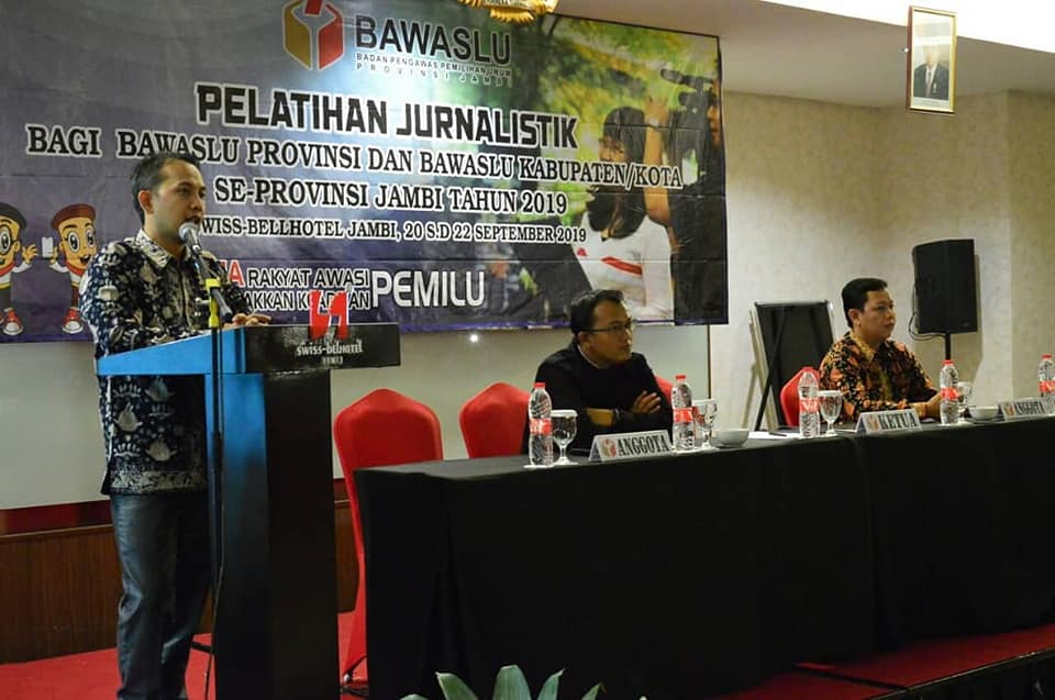Jambi, Badan Pengawas Pemilihan Umum - Badan Pengawas Pemilihan Umum (Bawaslu) Provinsi Jambi mengadakan Pelatihan Jurnalistik bagi Bawaslu Provinsi dan Bawaslu Kabupaten/Kota Se-Provinsi Jambi Tahun 2019, di Swiss-BelHotel Jambi pada tanggal 20-22 September 2019.