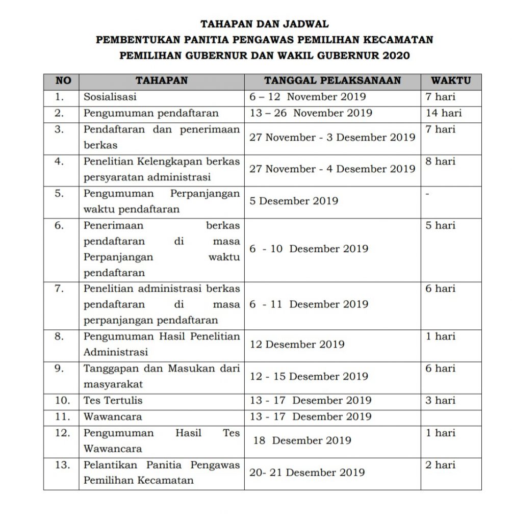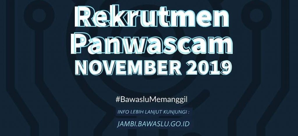 Menurut Ketua Bawaslu Provinsi Jambi Asnawi R, M.Pd mengatakan berdasarkan Keputusan Ketua Badan Pengawas Pemilu Nomor 0883/K.BAWASLU/KP.01.00/XI/2019 Tanggal 4 November 2019 tentang Pedoman Pelaksanaan Pembentukan Panwascam Tahun 2019, maka Bawaslu Kabupaten/Kota diminta untuk mulai melakukan perekrutan jajaran Pengawas Pemilihan Ad-Hoc.