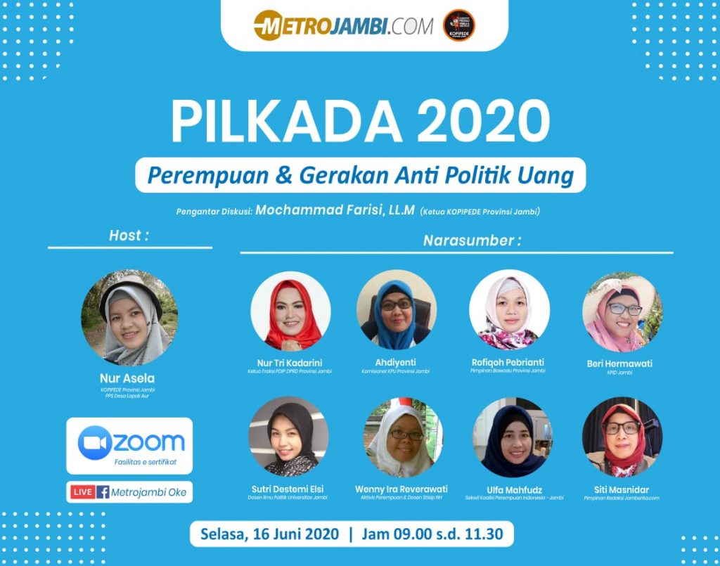 Selasa, (16/06/2020) Rofiqoh Pebrianti menjadi narasumber pada acara yang bertajuk : Perempuan & Gerakan Anti Politik Uang #Pilkada2020. Acara ini diselenggarakan oleh metrojambi.com yang mengundang beberapa narasumber perempuang tangguh dari berbagai macam stakeholder.